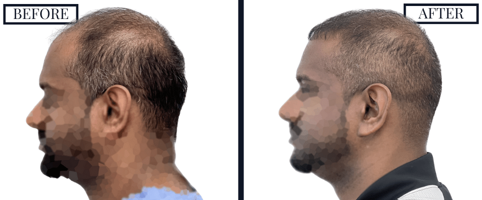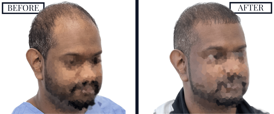 Of particular note for this particular patient, he did not have a great donor area but we were still able to extract 1516 grafts to restore his frontal hairline and add a little more density to the top of his head. Results shown are at 1 year post-op.