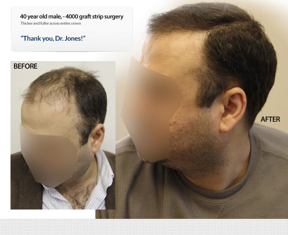 The key to a case like this is speed and accuracy. Our team has been getting faster and better at hair transplants for over a decade. This experience and speed really show in a result like this one. A robotic hair transplant or a less experienced team just can’t do 4000 grafts in one big session. We’re proud of these exceptional results and the great survivability rates we experience. Trust a proven team and contact us today or submit your photos for a no cost consultation. Learn your options from a team known for results.